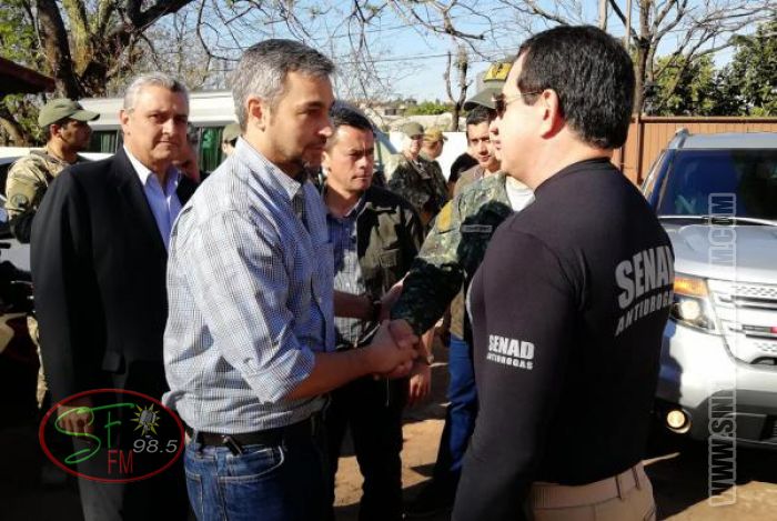 "Los grandes héroes y heroínas son los agentes de la SENAD (...) arriesgan su vida día a día contra el crimen organizado, y esto nos tiene que motivar a estar aquí y darles todo nuestro apoyo",manifestó el mandatario. Asimismo resaltó el gran trabajo de la fiscalía en el operativo que implicó una serie de allanamientos e intervenciones.