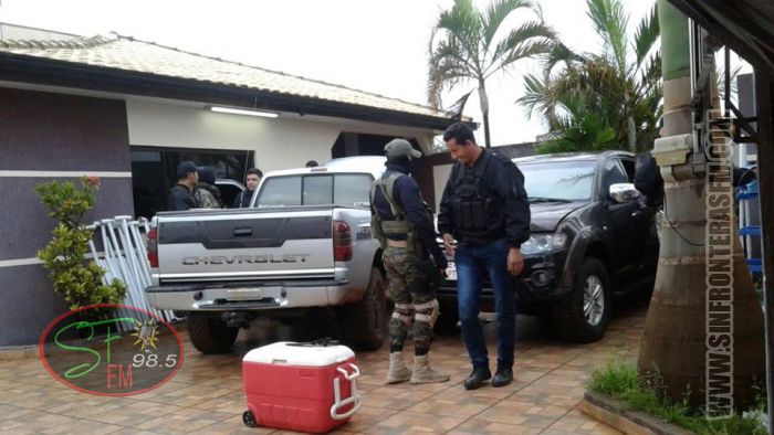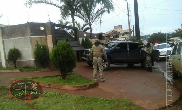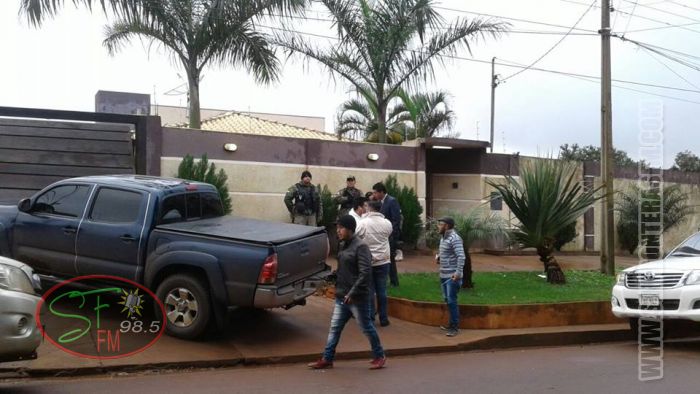 El procedimiento se lleva a cabo en una lujosa vivienda ubicada en el barrio San Blás de nuestra ciudad, propiedad de un cliente del abogado Walder Rodríguez. Agentes de la Secretaría Nacional Antidrogas SENAD y el representante del Ministerio Público, abogado Hugo Volpe, encabezan el operativo. Dos personas se hallan demoradas, según informes recabados con los intervinientes.