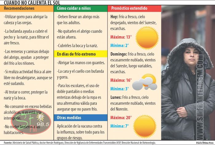 La hipotermia accidental se constituye en una preocupación para los profesionales de la salud en esta época del año, señala el doctor José Gómez, de la cátedra de Semiología del Hospital de Clínicas. Refirió que a esta situación se exponen los adultos mayores y los niños pequeños, además de quienes tienen patologías de base, como diabéticos y cardiacos.