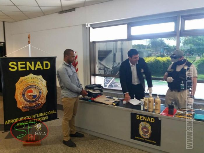Ante las sospechas, verificaron el interior de la misma encontrando 2 frascos de supuesto Shampoo en cuyo interior estaba oculta la droga, confirmado a través del análisis primario de campo.