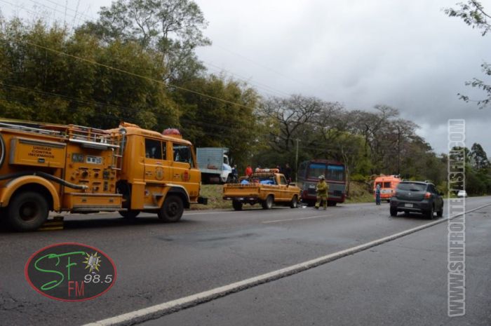 Según los pasajeros, el camión bajaba a una velocidad prudente, mientras que el colectivo lo hacía a una más elevada. En la zona del cerro, con dirección a Asunción, el colectivo chocó contra la parte trasera del camión, perdió el control y fue a parar a un costado de la ruta, impactando previamente contra el automóvil.