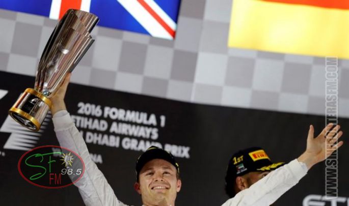 Rosberg, campeón del mundo tras acabar segundo en Abu Dhabi tras Hamilton.El alemán Nico Rosberg (Mercedes) se proclamó este domingo por primera vez en su carrera campeón del mundo de Fórmula Uno tras acabar segundo, por detrás de su compañero de equipo, el británico Lewis Hamilton, en el Gran Premio de Abu Dabi, vigésima primera y última prueba del certamen.
