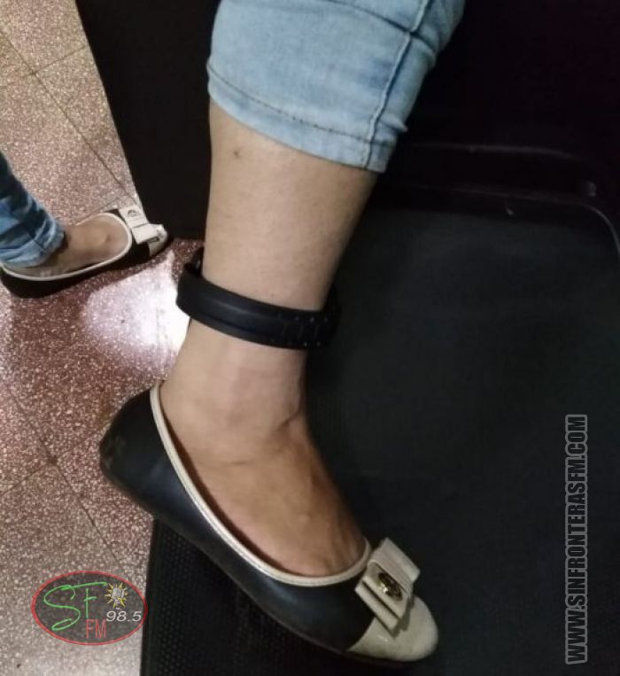 Una vez en la sede policial, una agente policial, procedió a verificar a la detenida y se halló en su tobillo lado derecho, un localizador electrónico.