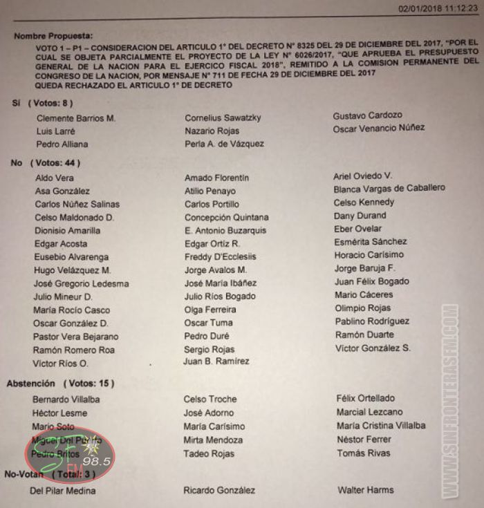 Cabe destacar que el veto parcial obtuvo los votos "favorables" de apenas ocho diputados. Además, hubo 15 abstenciones y tres que directamente no emitieron voto a favor ni en contra, informó Edgardo Romero, de ABC Cardinal desde el cuerpo legislativo.