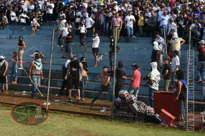 La Policía Nacional reportó varios heridos como consecuencia de los incidentes ocurridos ayer entre fanáticos en la cancha de Pedro Juan Caballero, antes de un partido entre Olimpia y Sol de América.