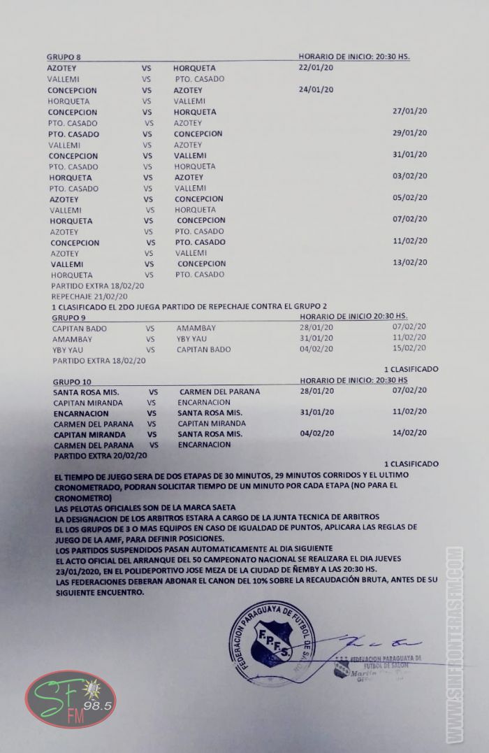 La tricolor de Amambay cerrará su participación en esta fase visitando a Yby Yaú el martes 11. En caso de partido extra se jugará el 18 de febrero.