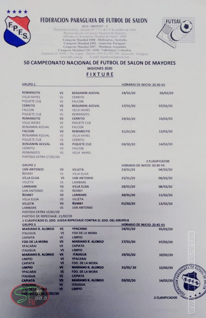 Todos los encuentros arrancarán a las 20:30 y cabe recordar que solo un equipo clasificará para la fase final a disputarse en San Ignacio, Misiones, entre el 27 de febrero al 07 de marzo.