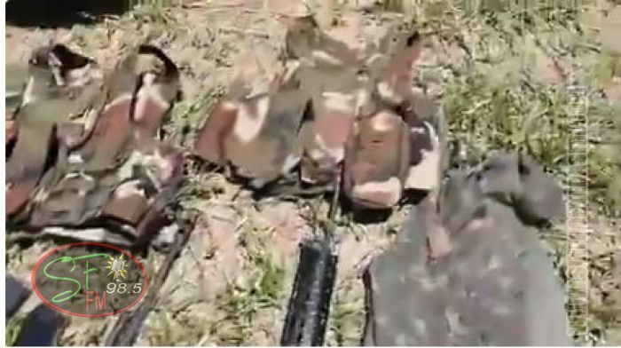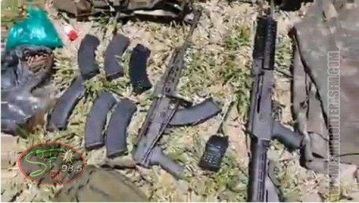 Dentro de la aeronave se encontraron bidones de combustible, uniformes camuflados, armas de grueso calibre y sus respectivas municiones. También fueron decomisadas dos camionetas.