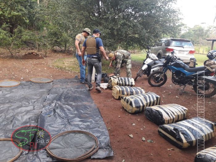 Agentes de la Secretaría Nacional Antidrogas (Senad), oficina Regional No 1 a cargo del agente especial Marcelo Benítez, hallaron un total de 560 kilos de marihuana que estaban enterrados en una fosa en el interior de una vivienda en la colonia Cerro Cora i. El abogado Armando Martín Cantero Fassino, agente fiscal de la Unidad Especializada de Lucha contra el Narcotráfico acompañó el operativo.