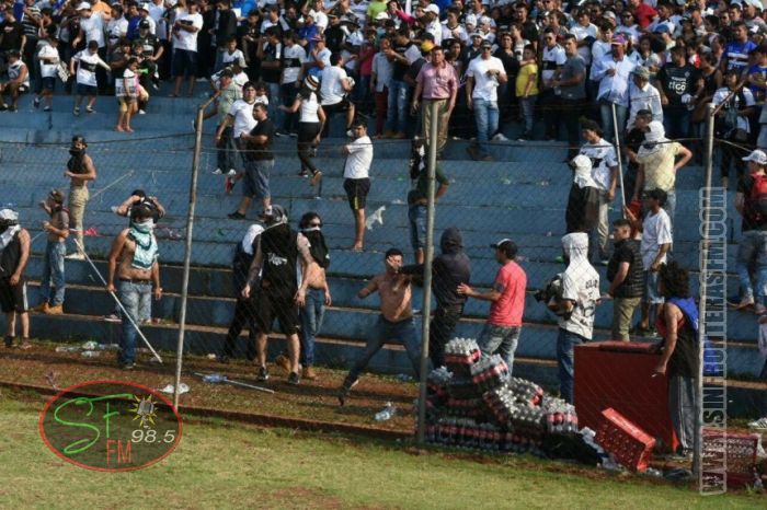 Lo que tenía que ser una fiesta en el estadio Río Parapití, pero apenas corrieron 7 minutos del juego cuando la violencia estalló en el sector de gradería sur entre propios barras de Olimpia. El fútbol fue interrumpido por varios minutos, hasta que el juez del duelo ordenó la suspensión.