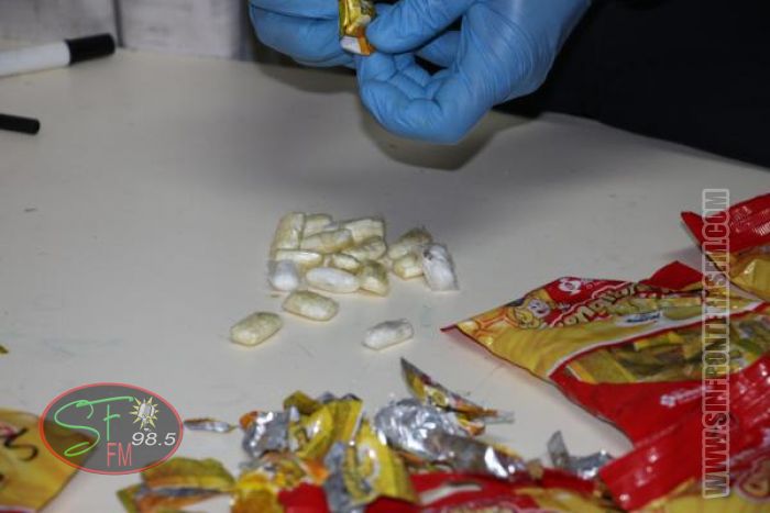 El total de lo incautado fue 1 KILO 502 GRAMOS DE COCAÍNA EN 529 PAQUETES CON FORMA DE CARAMELOS. La intercepción tuvo lugar el pasado 26 de marzo y el origen de la carga corresponde a Pedro Juan Caballero.