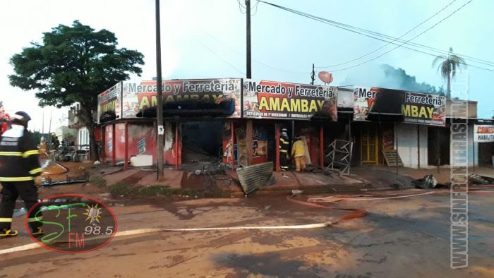 Un local denominado Comercial y Ferretería Amambay fue consumido totalmente por un incendio registrado en la madrugada de este martes. El lamentable episodio se produjo en el barrio Gral. Genes de la ciudad de Pedro Juan Caballero y aparentemente fue provocado, según manifstaciones de testigos.