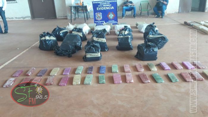 Agentes de departamento Antinarcóticos de la Policía Nacional, procedieron a la incautación de 631 kilos de supuesta marihuana prensada durante un allanamiento, efectuado en una vivienda, ubicada en Capitán Bado. Los intervinientes lograron incautar 729 panes que se encontraban envueltos en papel de colores. El operativo estuvo encabezado por el Agente fiscal, abogado Gabriel Segovia, quien interina la Unidad Especializada en la Lucha contra el Narcotráfico de Amambay, y personal de la Oficina Regional Amambay de Antinarcóticos, a cargo del Jefe Rufino Acosta Gill.