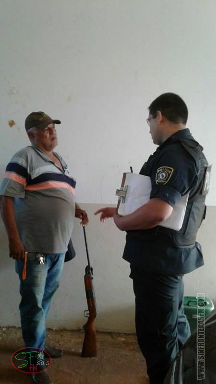 Agentes de la comisaría segunda acudieron al lugar procediendo a la incautación del rifle y al traslado del presunto autor hasta la base de dicha dependencia policial en carácter de demorado, además de la comunicación al Ministerio Público que deberá tomar las determinaciones.