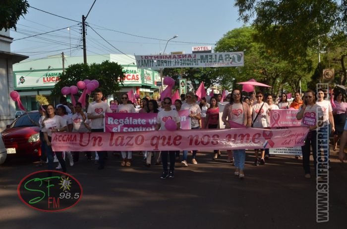 Varias instituciones educativas, organizaciones, gremios y autoridades, se sumaron al evento organizado en forma conjunta por el Despacho de la Primera Dama, la Secretaría de la Mujer, Niñez y Adolescencia y la Asociación de Mujeres ACCMA, como parte de las actividades de la campaña “Octubre Rosa”.