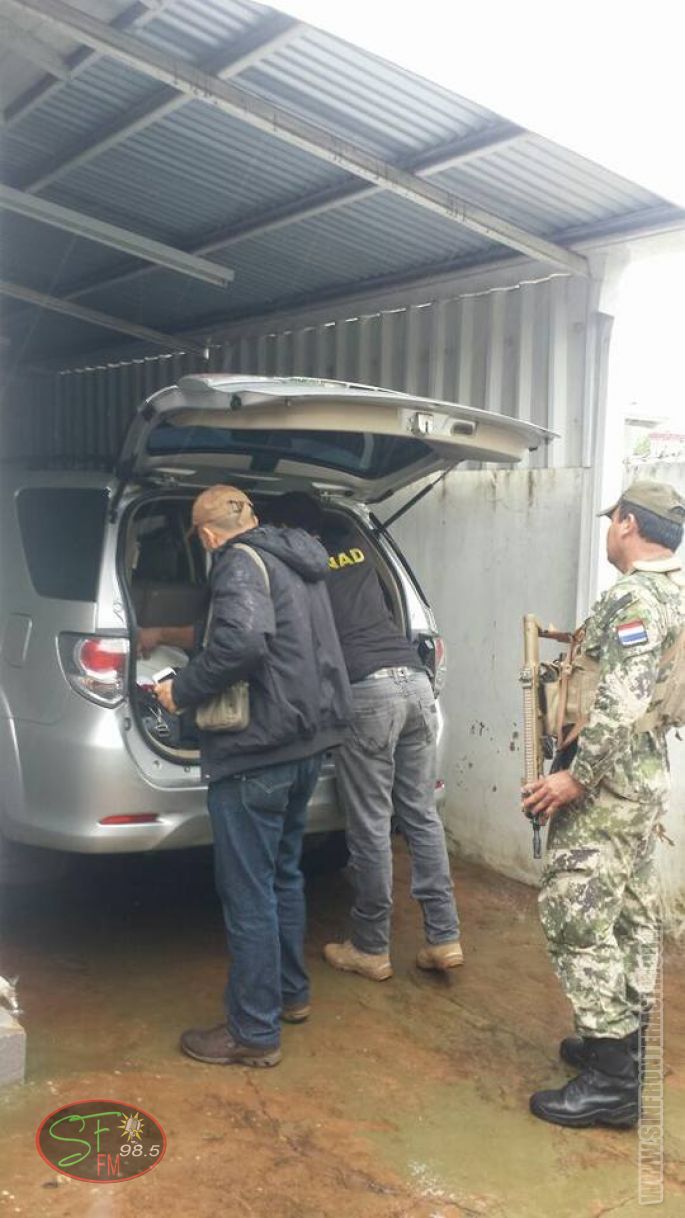 En un procedimiento realizado por agentes de la Senad, en el barrio Guarani ,12 de Junio e/Julia Cueto de Estigarribia,fueron aprehendidas dos personas identificadas como Julio César Romero,pyo, 36 años y Antonio Librado Bernal Aguilera , pyo,39 años, los mismo manifestaron ser funcionario de la Municipalidad de Pedro Juan Caballero.