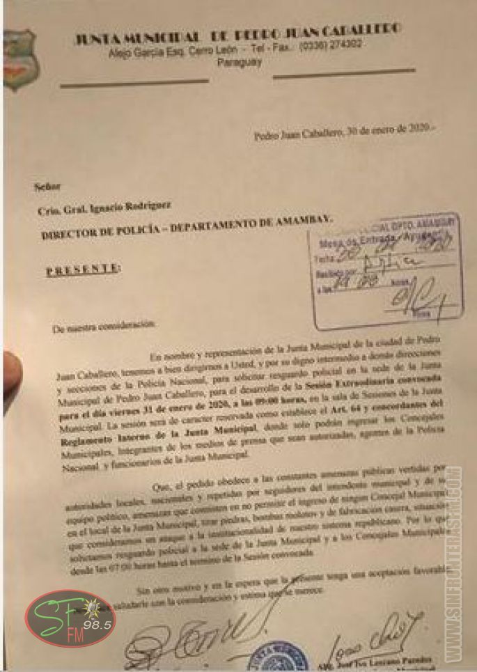 PEDRO JUAN CABALLERO.- El intendente de Pedro Juan Caballero, José Carlos Acevedo, negó que haya contratado sicarios para atacar la residencia de la jefa regional del Indert, abogada Gail Gina González, pareja del concejal departamental y presidente de la seccional 217 de Pedro Juan Caballero Julio Vega Dávalos, en donde un vehículo que se encontraba estacionado en su frente recibió ayer de madrugada una lluvia de balas de arma de fuego de grueso calibre, fusil calibre 7.62, de acuerdo al informe policial de la Comisaría 1ª sobre el caso.
