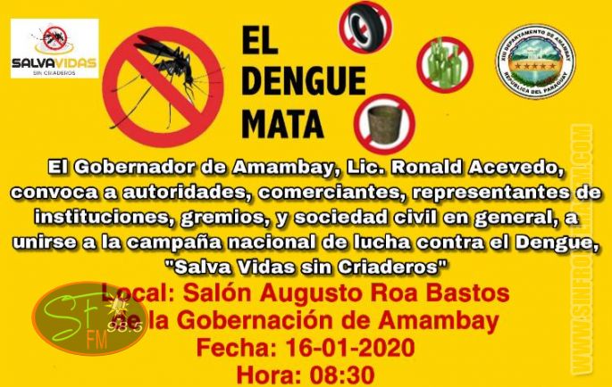 PEDRO JUAN CABALLERO. Con el objetivo de coordinar acciones para la prevención y el control de las arbovirosis en focos de riesgo de brotes de Dengue, Zika y Chikungunya, hoy jueves, 16 de enerose llevara a cabo la primera reunión en el marco de la campaña nacional “Salva vidas sin criaderos”.