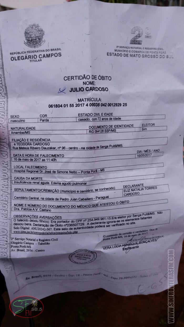 En diálogo con Radio Sin Fronteras, Sanabria señaló que el ciudadano fue enterrado ayer.