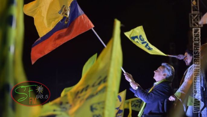 ç El candidato oficialista Lenín Moreno, del partido Alianza País, declaró su victoria en una intervención ante sus simpatizantes sin que aún se conozcan resultados finales del CNE. Con más del 98,76% escrutado Moreno tiene el 51,15% y el opositor Guillermo Lasso el 48,85%.