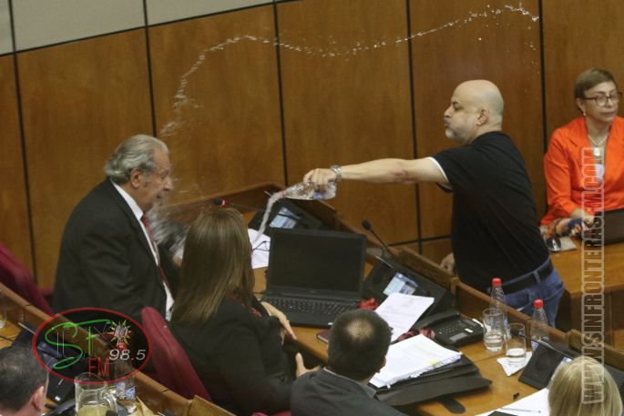 Un trabajo realizado por el fotógrafo del diario La Nación, Christian Meza, obtuvo el primer premio en el concurso de fotografía “Libertad de expresión en Paraguay”. La fotografía ganadora del primer lugar le correspondió por su trabajo “Ni se te ocurra”, la frase que acompañó el “baño” que recibió el senador Juan Carlos Galaverna, por parte de su colega Paraguayo Cubas.