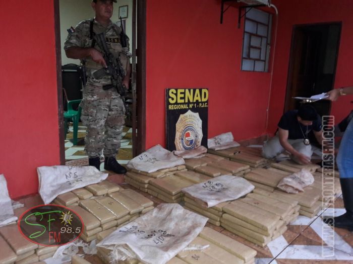 Agentes de la Secretaría Nacional Antidrogas (SENAD) lograron incautar 557 kilos de supuesta marihuana prensada, durante un allanamiento de vivienda, efectuado en la tarde de este jueves en la fracción Amistad II del barrio Jardín Aurora.