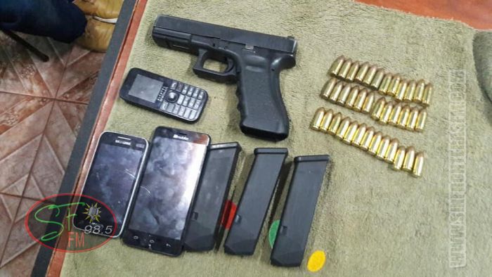En el procedimiento, los intervinientes lograron incautar una pistola, cal. 9mm, marca Glock, tres cargadores con 37 cartuchos vivos cal. 9mm y tres aparatos celulares.