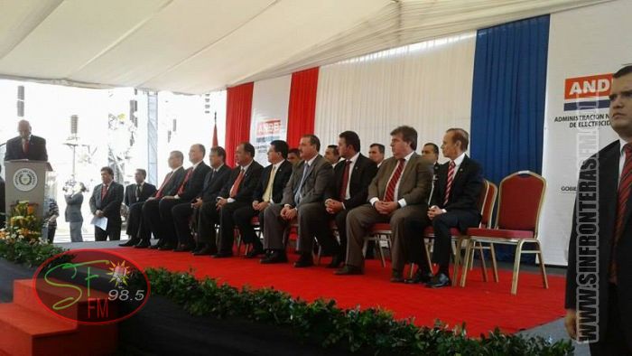 A las 08:30, el Presidente de la República participó de la nueva línea de transmisión y repotenciación de la Estación Subestática de la ANDE, en el Km 497. El acto arrancó con las palabras del presidente del Consejo de la Administración Nacional de Electricidad, ingeniero Víctor Romero Solís, quien destacó la importancia de la obra y el beneficio que representará dicha obra en nuestro departamento y de manera especial, a la instalación del Parque Industrial.
