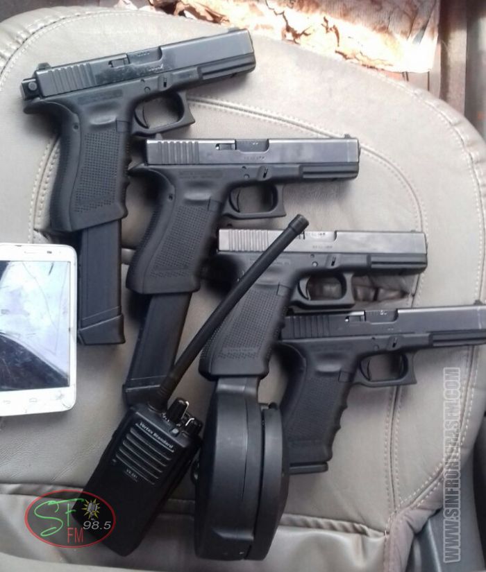 Los intervinientes lograron incautar un arma larga AR 15, cinco pistolas de la marca Glock, chalecos, aparatos celulares y un automóvil marca Kía, modelo Soul color Blanco.