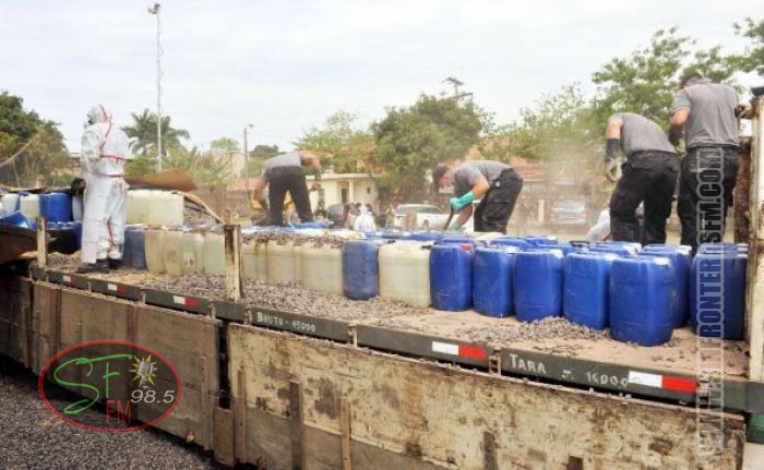 El operativo de la Senad permitió la incautación de 9.450 kilos de diversos productos químicos, todos precursores de la cocaína.