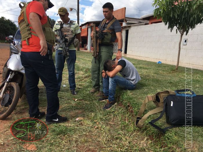 Agentes de la Secretaría Nacional Antidrogas (Senad) de la Oficina Regional N° 1 de Pedro Juan Caballero, bajo la coordinación del agente especial Marcelo Benítez procedieron a la aprehensión de un Menor, identificado con las iniciales L. G. R. G., paraguayo de 16 años, domiciliado en el barrio San Blas de nuestra ciudad.