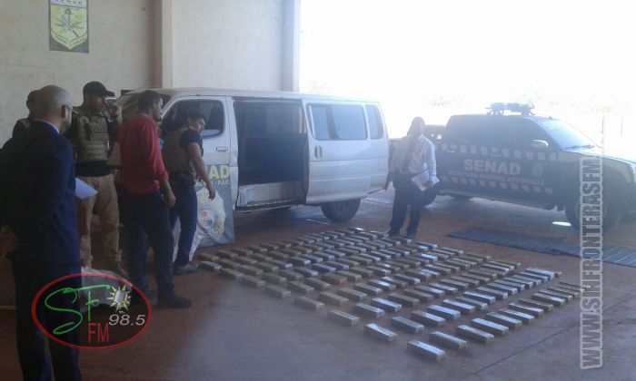 Agentes de la Secretaría Nacional Antidrogas procedieron a la incautación de 158 kilos de supuesta marihuana, distribuidos en 173 paquetes que eran transportados entre panificados en un furgón Toyota Hiace, color blanco, chapa CBR 769 PY con doble fondo, que transitaba sobre la ruta V, a la altura de la colonia Raúl Ocampos Rojas, más conocida como Chiriguelo.