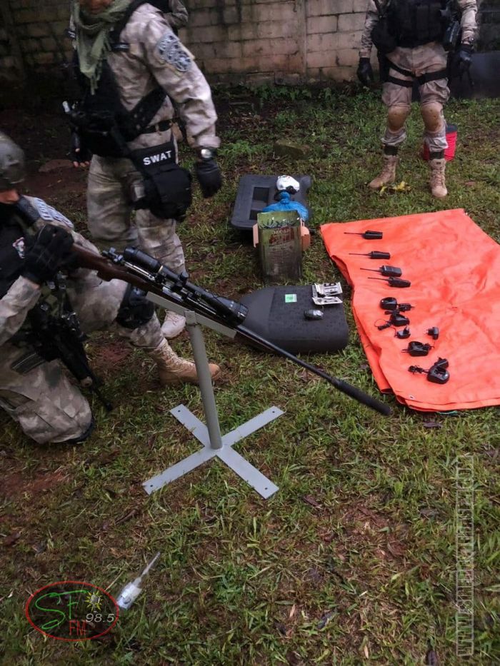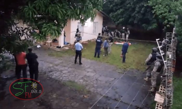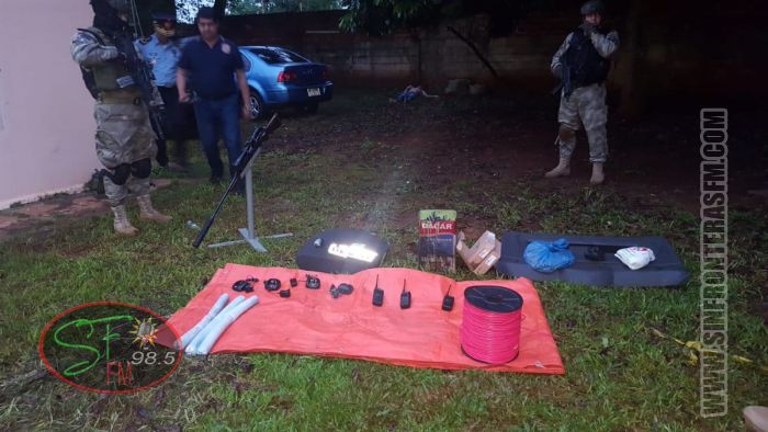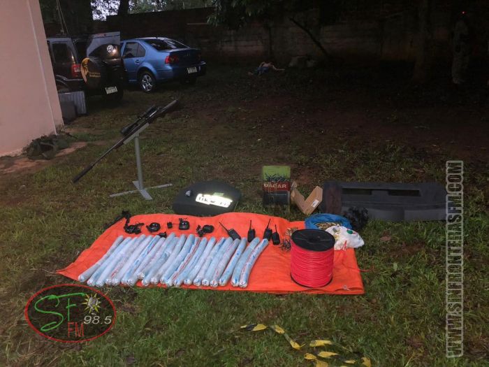 El representante de la sociedad informó además que encontraron armas largas en el lugar, 84 kilos de dinamita, clavos miguelito, un fusil con silenciador y granadas de mano, entre otros elementos.