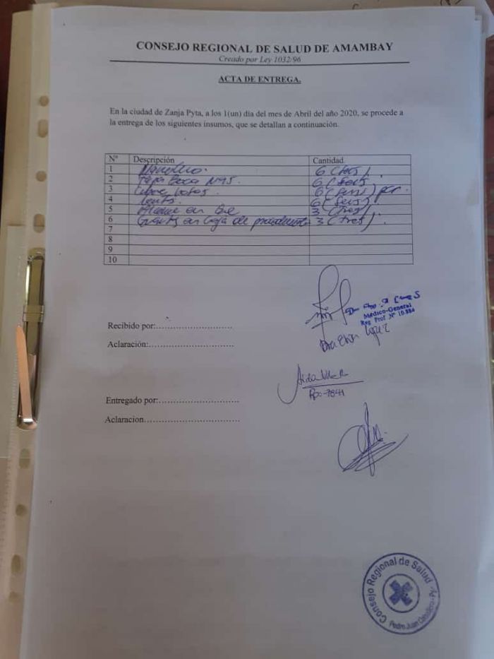 Estuvieron presentes el presidente del consejo departamental, Dr. Christian Nuñez, el presidente del consejo local Egidio Pedra Martínez, el secretario general de la Gobernación de Amambay Almir Amaral, además de los profesionales médicos de las USF beneficiadas. Agradecimientos al Gobernador Ronald Acevedo y al Dr. Christian Nuñez.