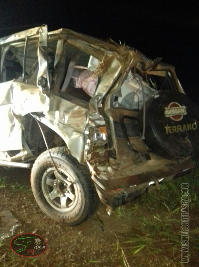 El otro rodado involucrado, una camioneta marca Nissan tipo Terrano, chapa AXP 992 guiado por Roberto Gracia, 62 años de edad, acompañado por Cristina Álvaro de 55 años, Estela Sanguina Martínez de 43 años de edad, una menor de 13 años identificada con las iniciales M. A. P. S y José Antonio Pereira Vera de 39 años de edad, todos domiciliados en el cruce Tacuatí- San Pedro.