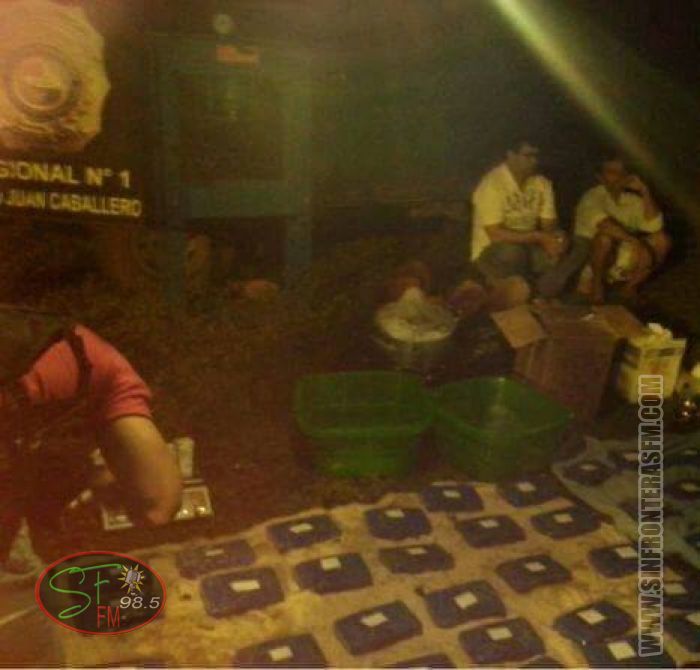 En la oportunidad, la comitiva encontró un laboratorio para procesamiento y mezcla de cocaína, además de 74 kilos 519 gramos de la droga, distribuida en 76 panes. En el lugar fueron detenidas dos personas, Vicente Cano Espínola de 41 años y Francisco González de 58 años, ambos de nacionalidad paraguaya.